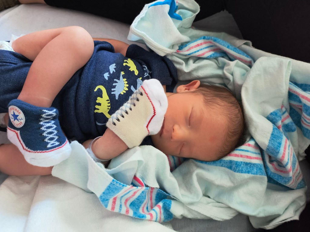 Ma fille annonce avoir donné naissance le matin à 9 h 04 et que tout le monde va bien. Elle a posté une photo de mon petit-fils : il est magnifique !